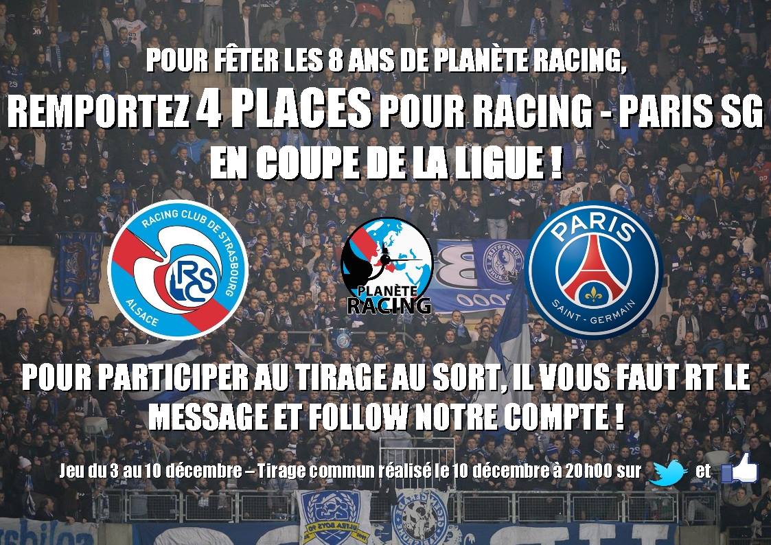 Vous avez été 1920 sur Facebook et 194 sut Twitter à avoir participé au concours des 4 places pour le match de Coupe de la Ligue face au PSG ce mercredi à 21h05 dans le cadre des 8 ans de l'émission. On vous en remercie déjà !
