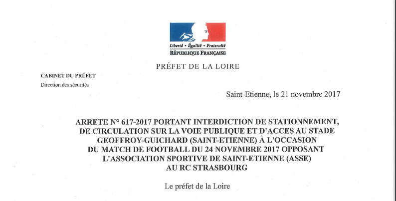 L'intégralité, et la version originale de l'arrêté préfectorale du Préfet de la Loire est disponible à cette adresse.
