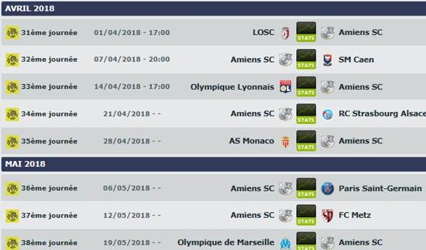 - 34e journée : samedi 21 avril 2018 20h00 : Amiens - RCS