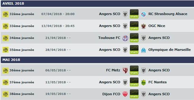 - 32e journée : samedi 7 avril 2018 20h00 : Angers - RCS
