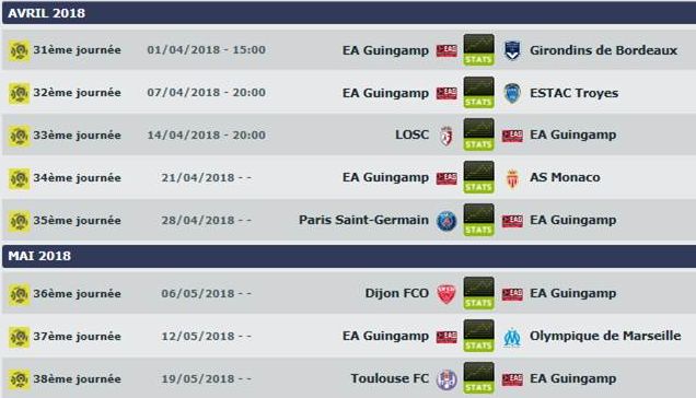 - 14ème : EA Guingamp