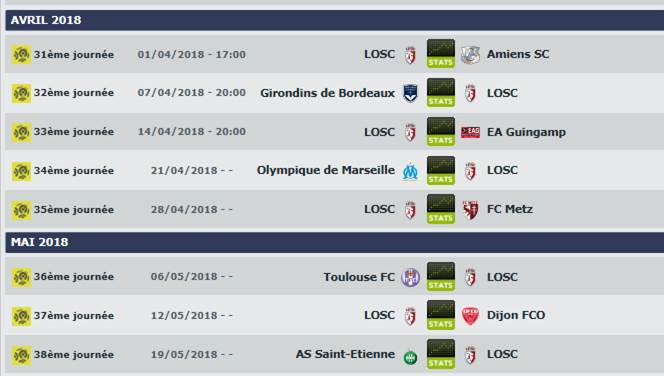 - 33e journée : samedi 14 avril 2018 20h00 : RCS - St-Etienne