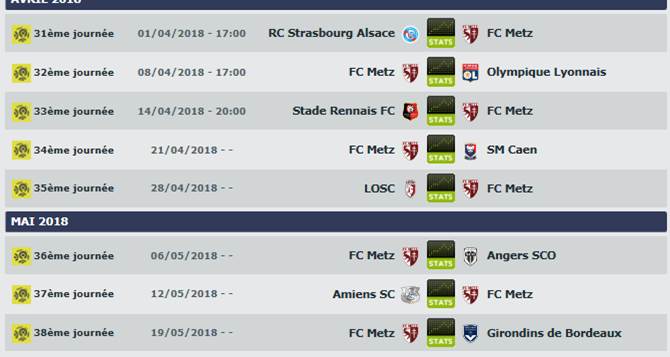 Tous les observateurs du ballon rond étaient d’accord pour dire que Metz jouerait le maintien cette saison, par contre personne n’aurait cru à une telle déconvenue. Metz est relégable depuis la 3ème journée et 20ème depuis la 4ème journée. Depuis, le club messin n’a jamais réussi à décoller. A tel point que Philippe Hinschberger a été rapidement demis de ses fonctions (le 22 octobre) et remplacé par un Frédéric Hantz qui a réussi à s’appuyer sur les valeurs fortes de son équipes (Nolan Roux et ses 12 buts, Mathieu Dossevi et ses 7 passes décisives). Le maintien parait plus qu'utopique pour les Messins qui pourraient cependant jouer le rôle de trouble faite sur la fin de ce championnat surtout concernant les rencontres de Strasbourg et Amiens.