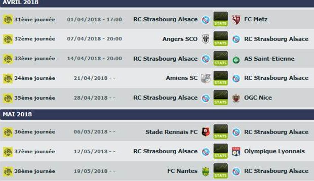 - 31e journée : dimanche 1 avril 2018 17h00 : RCS - Metz