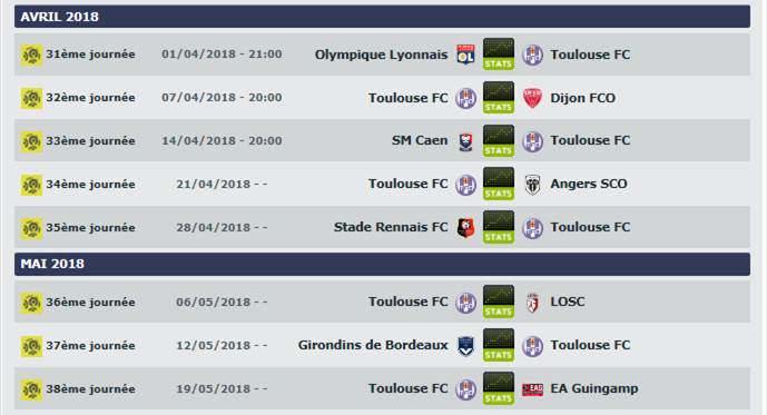 Qui auraient cru en début de saison que les Toulousains seraient à la lutte pour le maintien ? Personne. En effet, Toulouse dispose d’une belle équipe sur le papier (Delort, Durmaz, Cahuzac, Julien, Laffont, …). Déjà à la lutte la saison dernière jusqu’à la dernière journée, les hommes de Pascal Dupraz avaient réussi à se sauver in extremis. Cependant l’entraineur savoyard n’a pas réussi à continuer sur sa lancée et est même partie de lui-même le 22 janvier. Depuis le TFC reste sur 2 victoires, 4 nuls et 4 défaites sous la coupe de Mickaël Debève, homme de la maison violette qui aura la lourde charge de sauver le bateau qui tangue. Le TFC a un calendrier assez abordable sur le papier, à part la réception de Lyon.