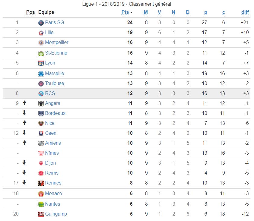 Un meilleur classement, le double de points et surtout une meilleure attaque constituent les satisfactions de ce début de saison 2018-2019. A noter également que les attaquants du Racing, Da Costa et Mothiba en tête, contribuent grandement à la bonne marche des Bleus. Un classement qui permet de voir devant tout en gardant un oeil derrière (source : www.racingstub.com).
