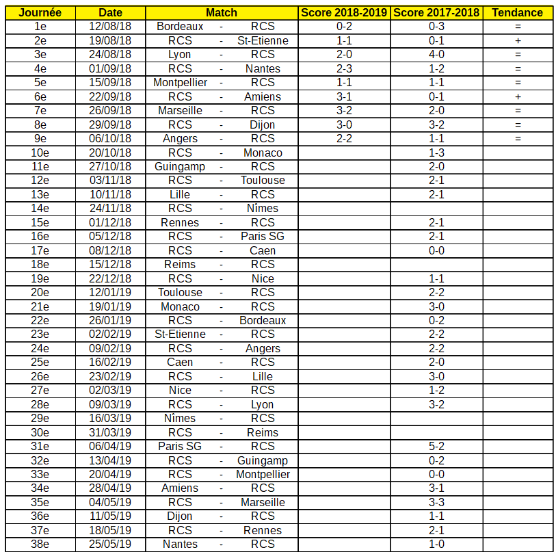 Attardons nous d'abord aux scores des matchs. Dans les résultats, le Racing n'a fait mieux que la saison passée que face à deux adversaires. C'est peu, mais face au sept autres la tendance est identique que lors de la saison 2017-2018 avec également une différence de but moins importante lors des défaites à Lyon ou Marseille par exemple, preuve d'une certaine progression.