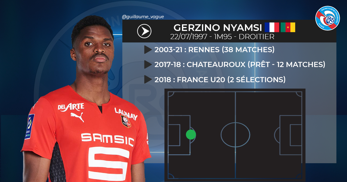 A Strasbourg, il aura l'occasion de retrouver des visages familiers. Si son heure devait être la saison dernière, selon ses dires dans une interview accordée à Ouest France en avril 2021, il y annonçait également qu'il parviendrait à être titulaire « à Rennes ou ailleurs », fier également de ses quelques apparitions en Champions League avec son club de toujours, rejoint en 2003. A Strasbourg, Gerzino Nyamsi aura à coeur de poursuivre sa marche en avant, progresser, car « il a toutes les cartes en main pour devenir un bon défenseur de Ligue 1 », ajoutant que « Julien Stéphan pourra lui redonner confiance, ça pourrait être la bonne pioche ». Un joueur à la mentalité irréprochable à en croire les nombreuses marques d'affection des supporters rennais sur la publication annonçant son départ. Mais surtout, un joueur "mort de faim" à en croire ses propos sur le site officiel du Racing. Qu'il puisse alors croquer son aventure à pleine dent.