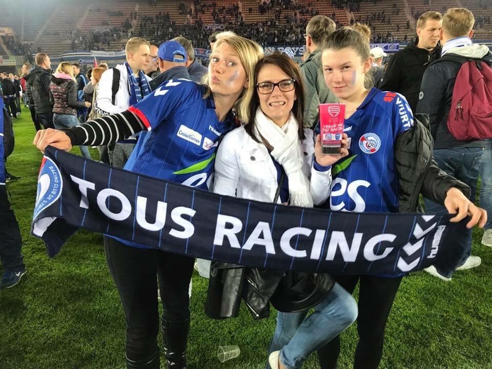 « J'ai dû voir un ou deux matchs lorsqu'il évoluait en CFA, quelques uns en National, beaucoup plus en Ligue 2. J'ai vraiment replongé en avril dernier lorsque mon fils a participé au stage Racing Academy. J'avais pris une semaine de congé pour pouvoir l'y emmener et les séances d'entraînement étaient ouvertes aux parents j'ai donc passé une grande partie de la semaine là bas. Me rendre tous les jours à la Meinau a fait remonter tous ces bons moments que j'ai passé là bas durant mon enfance et surtout mon adolescence. Et puis un matin durant cette semaine, le Racing était allé s'entraîner à Illkirch. J'ai proposé à mes sœurs (Stéphanie qui était déjà présente à l'époque et Emilie la petite dernière de la famille née en 2003 et qu'on a totalement converti au Racing aussi) de nous y rendre. A la fin de cet entraînement nous étions à nouveau totalement mordues par le Racing ! Depuis, j'essaye de me rendre assez régulièrement aux entraînements avec mes sœurs et mon fils. Et puis il y a quelques jours, mon mari nous a fait la bonne surprise de nous faire un super cadeau : l'abonnement pour cette nouvelle saison ! Je verrai donc tous les matchs du Racing ! ».