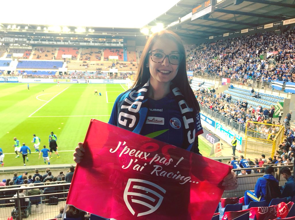 Depuis toute petite, Marie, comptable de 30 ans, vit avec la passion du football. « Je suis une grande passionnée de football. Je ne saurais réellement dire comment tout ça a commencé, en tout cas ce dont je me souviens c’est que j’étais la seule fille à jouer au foot avec les garçons dans la cour de l’école et que j’adorais ça ! ». De la cour de l'école aux terrains de football, il n'y avait finalement qu'un pas qu'elle a franchi. « C’est d’ailleurs ce qui m’a donné envie de pratiquer ce sport en club pendant quelques années et c’est justement avec mon équipe de foot de l’époque que j’ai vécu mon premier match à la Meinau. C’était lors de la saison 1998/1999, face à Auxerre, victoire 2-1 du Racing. Je me souviens bien de ce match, car c’était le retour de Zitelli au club après un passage par Karlsruhe, il a été très acclamé par les supporters. Depuis ce jour le Racing est dans mon cœur ! ».