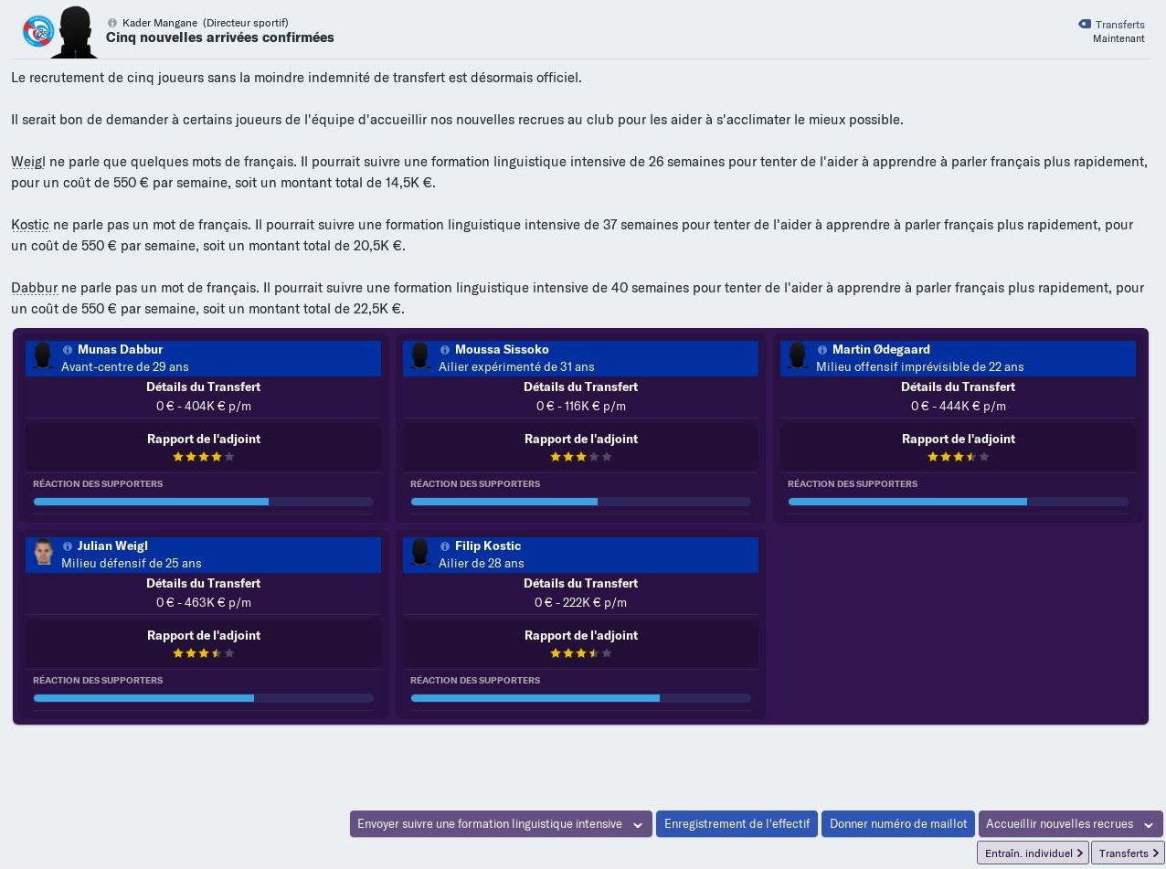 Petit zoom sur l'effectif. Il reste bien quelques joueurs actuels du Racing, comme Kamara, Mitrovic, Martin ou encore Carole. Pas forcément titulaire, ils restent des membres influents du vestiaire. Attention si vous cherchez à les faire partir.