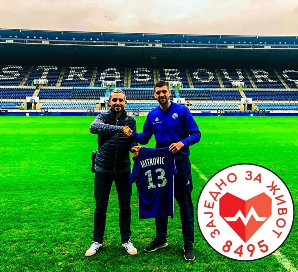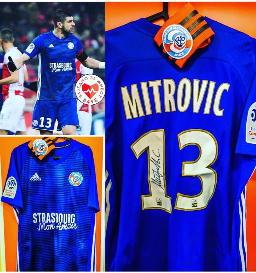 Le plus sentimental de ma collection, il est sentimental à bien des égards, le fameux maillot strasbourg mon amour porté par notre capitaine Stefan Mitrovic. Petite anecdote à son sujet, il m'a été remis au stade par Stefan lui-même suite à une visite de l'enceinte et une belle photo souvenir au centre du terrain, un souvenir qui restera gravé, une personne simple et vraiment remarquable notre cher Capitaine Stefan Mitrovic.