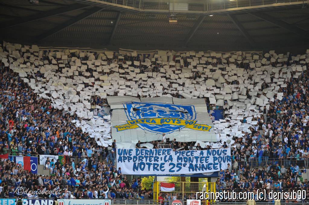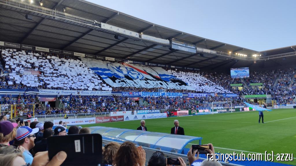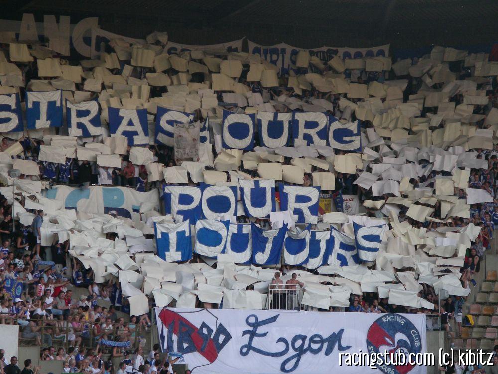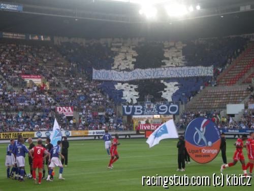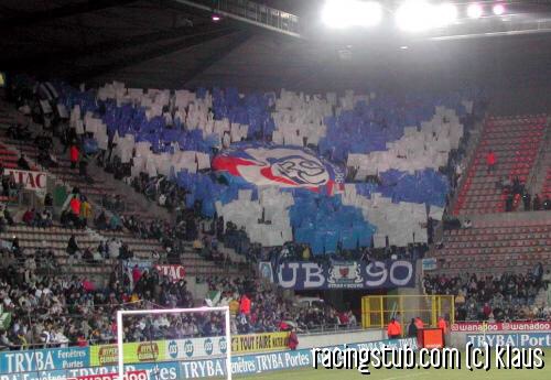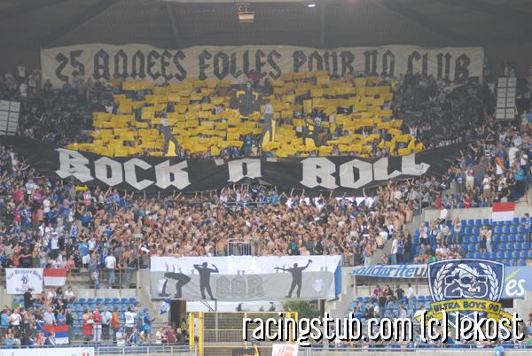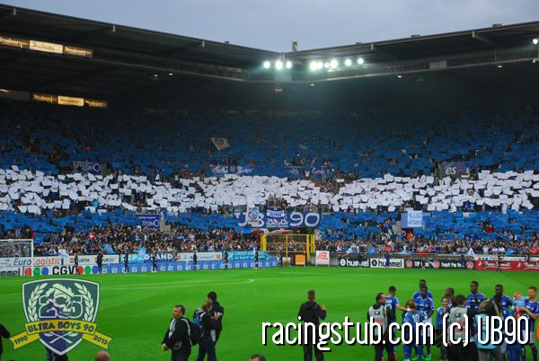 Chaque saison, les associations de supporters et membres du Kop animent les tribunes. Sous l'impulsion notamment des Ultra Boys 90, ces derniers nous offrent chaque saison un magnifique spectacle dans le quart de virage et désormais en Ouest haute. Grâce à la bible www.racingstub.com et aux nombreux photographes (UB90, KCB, Planète Racing, Florian Zobenbiehler, Denis Beylet, ... et bien d'autres !), nous avons pu rassembler toutes les photos (ou presque) des tifos des supporters. Un énorme travail collaboratif avec l'aide précieuse de Mohatetris. Merci !
