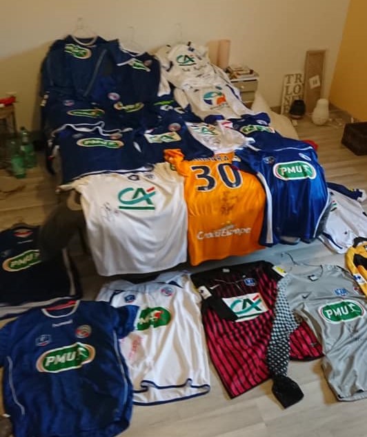 J’en ai actuellement plus de 30 sur 10 saisons. A la base je ne faisais que le Racing mais certains joueurs avec qui j'ai une forte amitié comme Stéphane Bahoken me garde chaque saison le maillot quelque soit le club où il se trouve ! Je n'en achète pas par contre. Je veux vraiment que ce soit un cadeau du joueur. Je me vois pas racheter ou revendre. Je suis à chaque fois super honoré d'en avoir. Quand j'ai mes copains à la maison, je profite toujours pour leur montrer la collection !