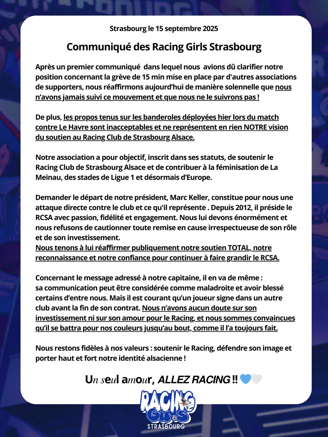 Quoi qu'il arrivera désormais après ce triste dimanche 14 septembre 2025, il y aura un avant et un après. La compréhension de la Meinau pour la lutte contre la multipropriété que l'on avait pu voir lors des premiers matchs est passée. Le Meinau va probablement gronder le 26 septembre prochain face à Marseille, et nous rappeler les heures les plus tristes que le Racing peut nous faire vivre. Et dans le même temps nous poser la question : quel est le projet qu'attendent désormais les associations après ce qui s'est passé ce dimanche ?